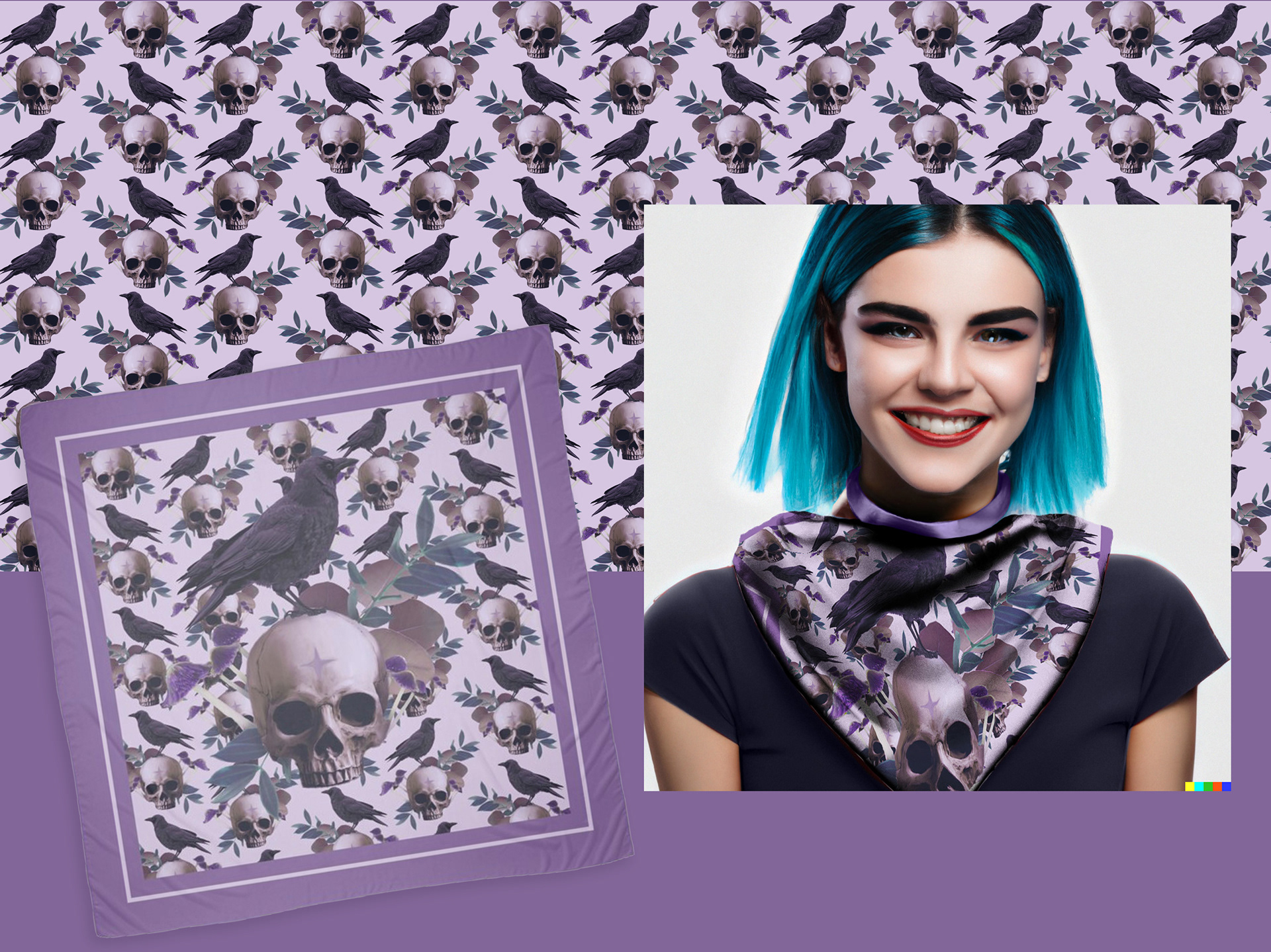 Imagem da modelo com lenço criada com ajuda de inteligência artificial | Image of the model with a scarf: created on Dall-e.